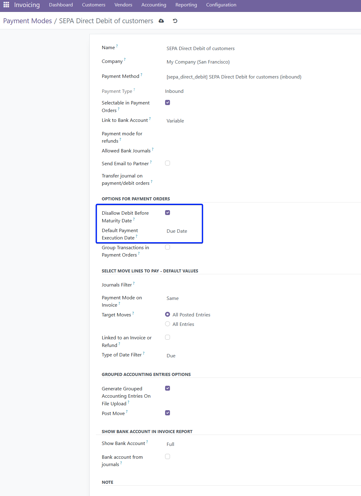 with payment mode/method "[sepa_direct_debit] SEPA Direct Debit for customers (inbound)"