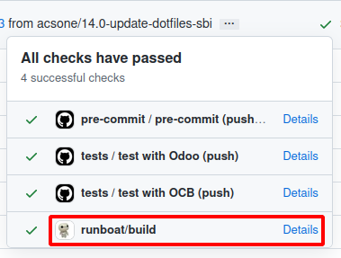 Dear contributors,As you may have noticed, a new tool arrived in the OCA landscape: runboat.It is a runbot replacement that is specially tailored to OCA needs. Its key feature is that it prepares Odoo environments from GitHub commits, and once they are initialized they are kept in a dormant state, ready to start in seconds when needed for testing. This way we can have a very large number of environments ready to use (up to 10 000 on our current machine), so there is a great chance that the branch you want to test is readily available and there is no wait for functional people wanting to contribute.If you are curious about the technology behind it, the runboat source code is available on GitHub, and this twitter thread highlights some tools used to create it.It is currently enabled for branches 10 to 15. And the test environment corresponding to each PR or commit is linked as part of the GitHub checks (look at the red cross or green check mark).Soon, links to runboat will be added to the README.md files of all repos for branches 13, 14 and 15.You can also open it for a repo and Odoo version with a link like this: https://runboat.odoo-community.org/builds?repo=oca/mis-builder&target_branch=14.0It is currently not enabled for branches older than 10, although in principle it should work for 8 and 9 too. If you need it and want to help make it happen, do not hesitate to get in touch on discord.Since runboat is proving to work very well and is much more resource efficient than runbot, while at the same time providing a better user experience, we can now shutdown runbot, in order to save on OCA server costs.With the help of Alexandre Fayolle, we are going to do that in the coming weeks, so prepare to say goodbye to runbot!Most existing links to runbot.odoo-community.org will then redirect to runboat.In the meantime, if you notice issues do not hesitate to get in touch by @ mentioning me on the PRs for which the runboat build would fail and you don't readily understand why or how to fix it. This will also help prepare for the move from Travis to GitHub actions which we are also planning in the first part of 2022.I also monitor the OCA Infrastructure discord channel from time to time.Best regards, and happy testing!-sbi