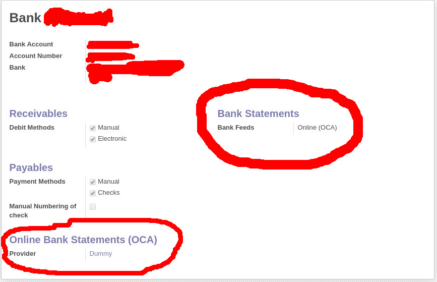 Hello Everyone,I'm moving forward with the implementation of my Odoo 11 CE, so far everything is working fine, but now I'm looking to have implemented the account_bank_statement_import_online module I successfully have it install and I follow the instruction, I set the Bank feeds to Online(OCA) but in provider I have only dummy as an option, I don't know how to change it or add another provider shot-2020-04-28_21-12-18.jpg (attached) with the specification of my bank. If I click on dummy it will show me shot-2020-04-28_21-02-09.jpg (attached), At this point, I don't know what to do so if you can please show me the path I'll really appreciate.Thanks for all your helpRegards,----