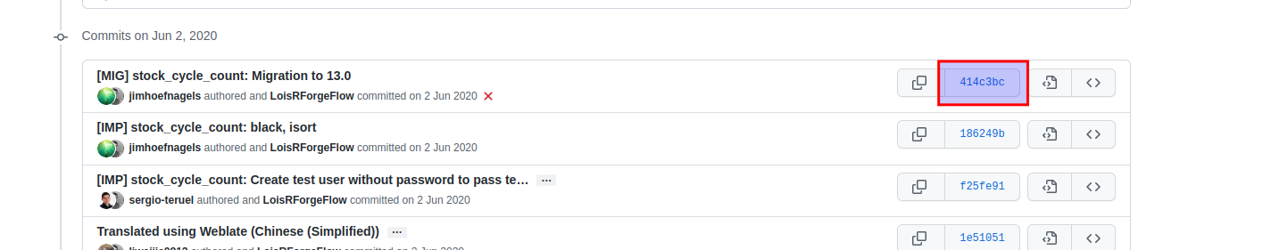 You're wrong on this as this is the case currently (different SHA). Example with stock_cycle_count module:When basing the new main branch on preceding one:- Derived from this, it requires that the reviewers alw ays need to check if the migration pull request contains the latest commits.