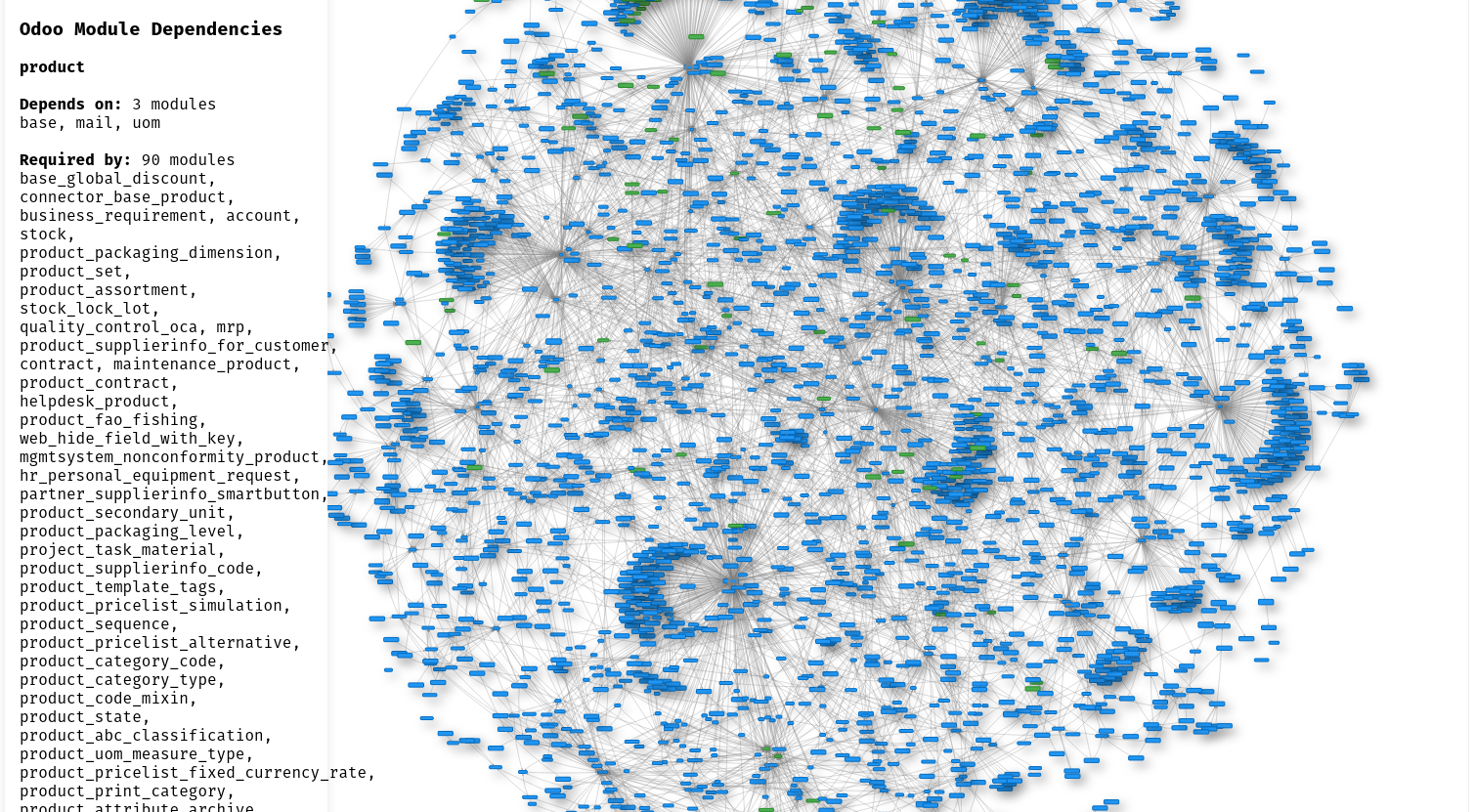 Subject: Re: Odoo Module Dependency VisualisationHelloGreat tool !It could be supercool if you colorize depending on the licence... it could show if licence inheritance is correct for a project...for instance OPL-1 should not inherit AGPL-3...Bravo--------------------------------
